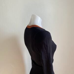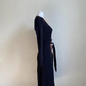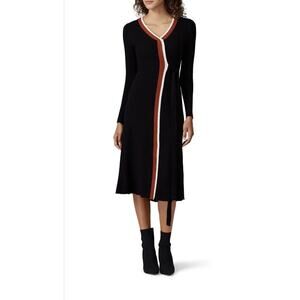 Caara Size Small Cedar Midi Dress Knit A Line Black Orange White Striped Belted