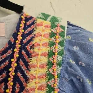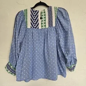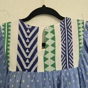 Anthro Verb by Pallavi Embroidered Swiss Dot Boho Blue Top