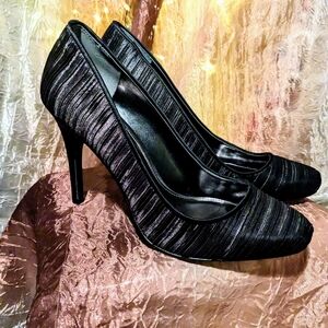 women's black satiny 2 inch pumps, the touch of Nina, like new never worn, size 7 ,v