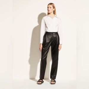 Front pleats and a tapered silhouette softly structure buttery leather pants that feel refined and indulgent, all at once.
