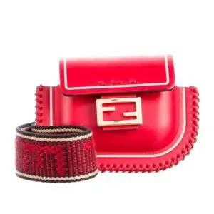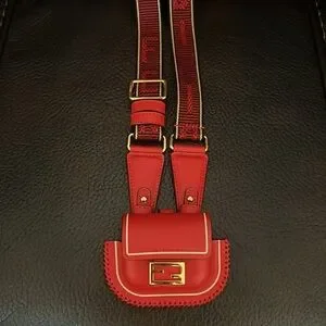 SALE!!! Fendi nano pico FF leather mini Baguette with logo crossbody strap