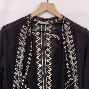 Hot & Delicious Embroidered Long Kimono Women's S Black Cream Boho Retro Beach