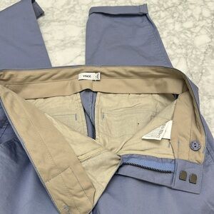A cotton trouser/pant is a great option for spring and summer. This flat front version from Vince is flattering and flattening choice. 8” rise. 29” inseam unruffled. Wear cuffed or in cuffed. Dress up or down. Belt loops add polish. Go preppy or make it your own with a silky blouse or tank. Slash pocket in front Tortoise Buttoned besom pockets in rear. EUC. No apparent stains or flaws. Comfortable and cool. 96% cotton 4% spandex.