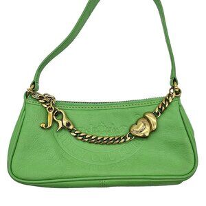 Vintage Y2K Juicy Couture Baguette Shoulder Bag Green Leather Mini Crown Charm