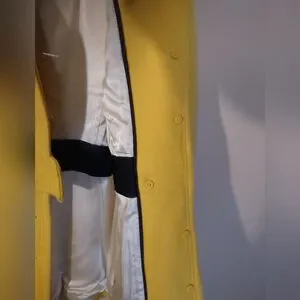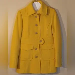 J. CREW YELLOW WOOL PEA COAT WITH BUTTONS ON CUFF, LARGE POCKETS; 70% WOOL, 30% VISCOSE, LINING 100% ACETATE; COMES WITH EXTRA BUTTONS; P2P 17.5in