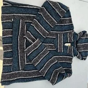 sunspecs Mexican Poncho- Baja- Gray/ White/ Blue- size Medium
