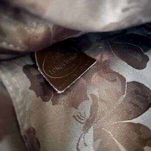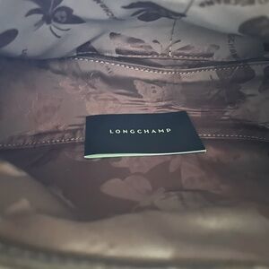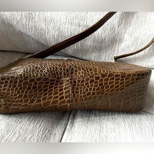 Longchamp Small Roseau Croc Embossed Brown Leather Top Handle Bag