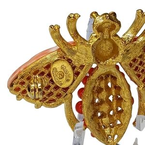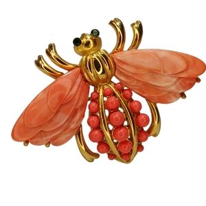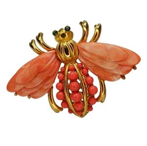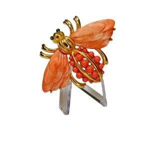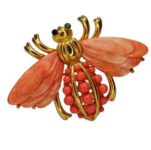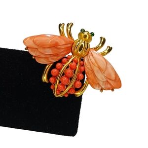 Rare Signed Hattie Carnegie Vintage Bee Peach Lucite Coral Colored Brooch Pin