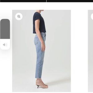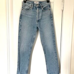Agolde Riley straight crop in light wash. 100% cotton, no stretch. Rise 11.5”; inseam 26”; leg opening 14”