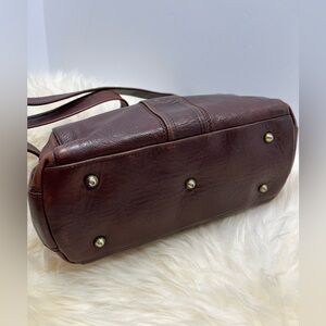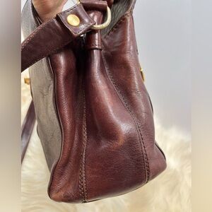 Marino Orlandi Made in Italy Large Speedy Satchel Leather Crossbody/ Shoulder Bag/ Vintage/ Genuine leather/ Rich Brown/ Cognac Saddle Bag/ Adjustable Strap/Interior Lining Platform d Signature Print/ Center Zip Pocket/ Back Zip Picket/ Gold-tone Hardware . This is a beautifully made bag that is standing the test of time. She is in great condition. Please see sll photos and video before purchasing or bidding for sizes and call outs if noted.