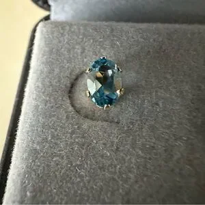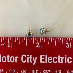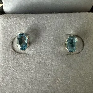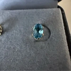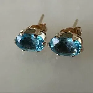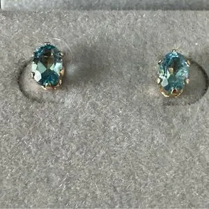 14k Solid Gold Blue Topaz Oval Post Earrings