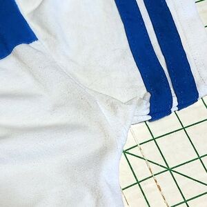 Ok conditon. Some yellowing under pits (pictures #7-8), small sewn pucker on front (picture #9), and some pilling.