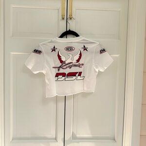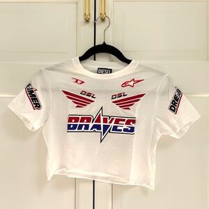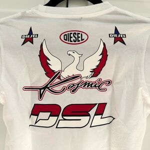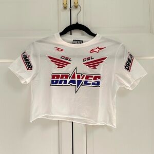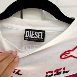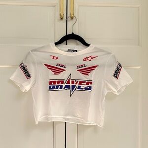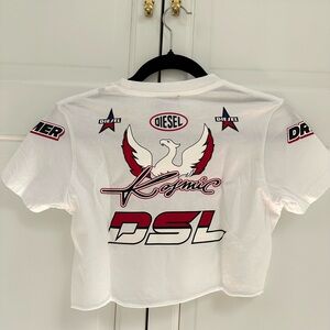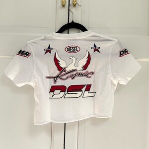 Cute Diesel cropped tee with raceway stickers