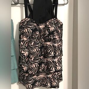 Womens plus size swim suit 2 piece. Very flattering with layered front.