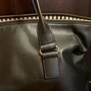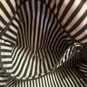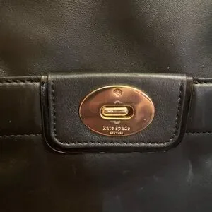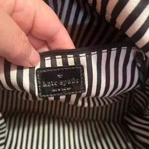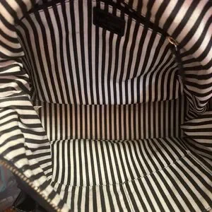 There was a Kate Spade, black leather hand bag. This bag is amazing. The lining I call it the Beetlejuice lining. The leather is so smooth. It’s like butter.