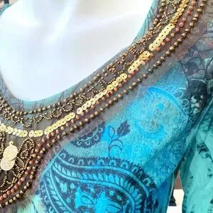 Beautiful ocean inspired turquoise tunic with faded paisley print