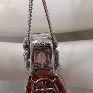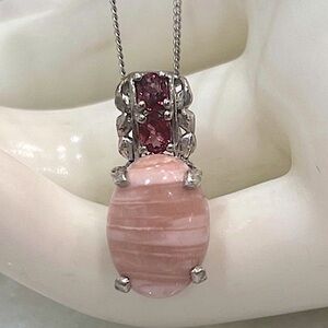 Australian Pink Opal Orissa Rhodolite Garnet Sterling Silver Pendant Nec…