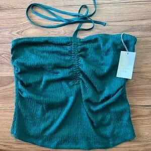 A New Day Jade Green Smocked Halter Top szL NWT.