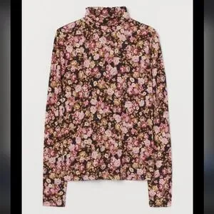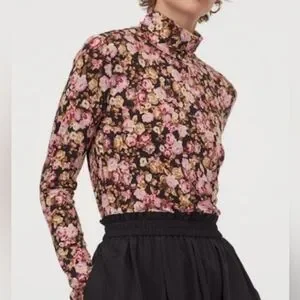 Out of Stock black, yellow and pink floral Jersey Knit Long Sleeve turtleneck top by H & M.