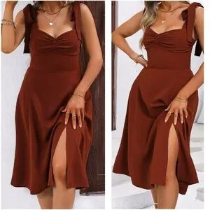 Plus Rust Solid Shoulder tie Sweetheart neck Cami Midi Dress