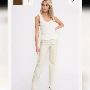 This Project Social T Lettuce Edge Tank is made from lightweight poinetelle fabric and is slim fitting. It has a square neckline and thick straps. Lettuce stitching along the neck and hemline are the cherry on top of this sweet tank.