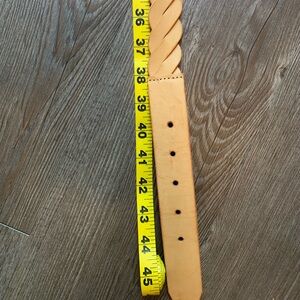 Natural leather with brass/gold buckle.