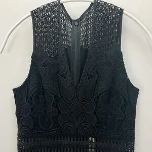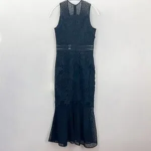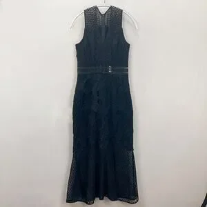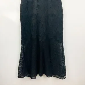 Jonathan Simkhai Black Lace & Crochet Corded Fluted Midi Dress, Sz 0 NWT