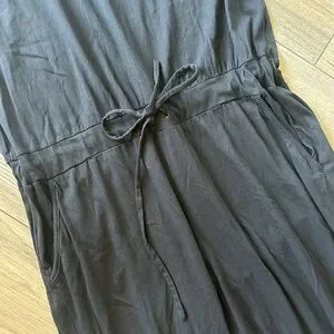 Black jumpsuit with tapered leg, tie waist, key hole back