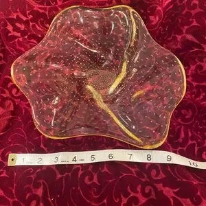 Beautiful candy / nut dish, or just to set out with your amber glass collection! Beautiful controlled bubbles, this is possibly Murano Glass. If confirmed would be priced much higher. Very few light scratches from use, hard to see.