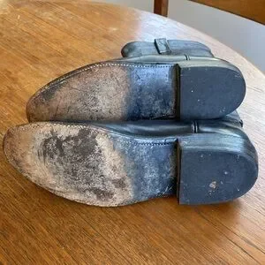 I believe the style is the Kennedy Roper. Classic and comfortable. Haven’t even attempted to polish or clean the outside of these cause look great worn in. My husband didn’t wear them too much. Just enough to break them in. In really great shape and will last.
