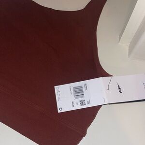 This sports bra is so soft and made with high quality material. As seen in the pictures, it is new with tags and a beautiful brown that will complement any skin tone!