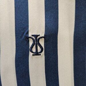 LilySilk Women's The Amalfi Stripe Silk Shirt, L, Blue & White Pinstripe, NWT
