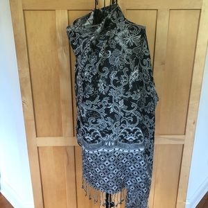 Waverly pashmina grey and black Scarf wrap with fringe and shimmer detail