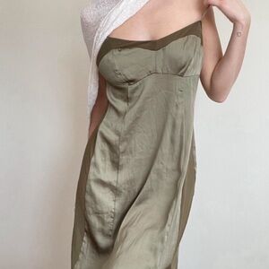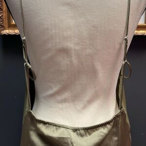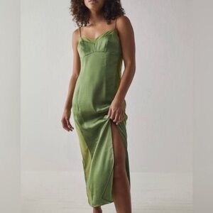 FREE PEOPLE Intimately City Cool Midi Slip Dress Olive Satin Sheer Khaki Green L