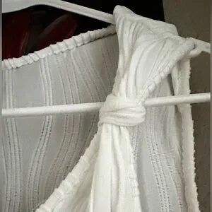 White 0XL tank top with knot detail in straps, pattern is flattering with raised detail