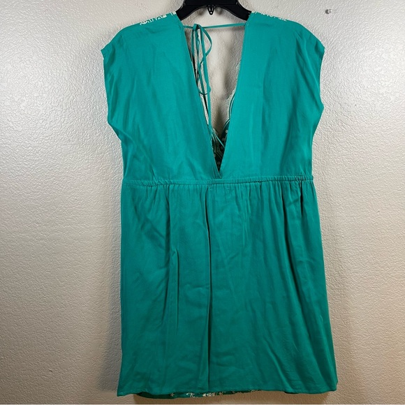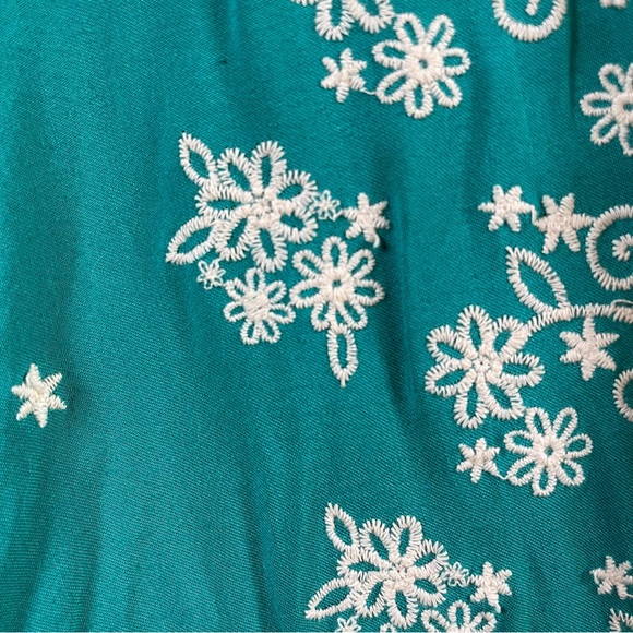 Summer dress , v-neck 2 ways , cap sleeves tie back , embroidered.