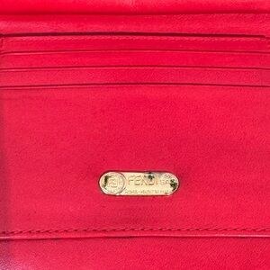 Imagine pulling this out of your purse – heads will turn, and you'll instantly feel like a boss. Don't miss the chance to own this rare gem. Act fast and add a touch of luxury to your everyday essentials with this Fendi Leopard/Red Leather Round Wallet.