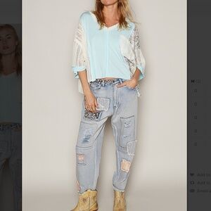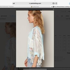 This beautiful knit top from POL boasts a flattering V-neckline and flared sleeves with intricate crochet and embroidered accents. The floral pattern and contrasting trim make it perfect for casual occasions like festivals, the beach, or vacations. Available This relaxed-fit top is made from a lightweight and sheer spandex and rayon material that is easy to care for and packable. The 3/4 sleeve length and knit fabric type make it suitable for both spring and summer seasons. This top is a must-have for any bohemian or boho style lover, and it's sure to become a classic piece in your wardrobe. POL’S clothing is always made with attention to detail and this top is no exception making is perfect for women who appreciate quality and style.
