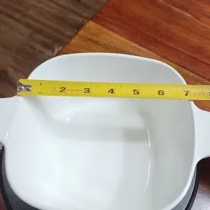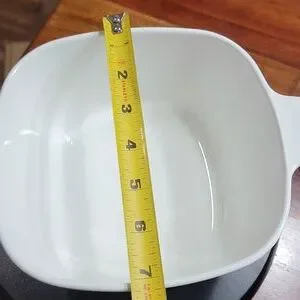This Pyrex covered dish has no chips or cracks and is in great condition. The size is pictured