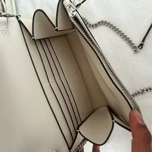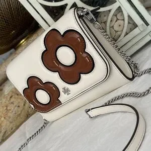 New Tory Burch EMERSON FLORAL APPLIQUE CHAIN WALLET LIGHT CREAM