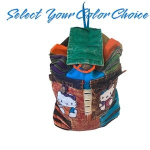 HELLO Kitty style burlap Kantha bohemian patchwork knapsack backpack Large