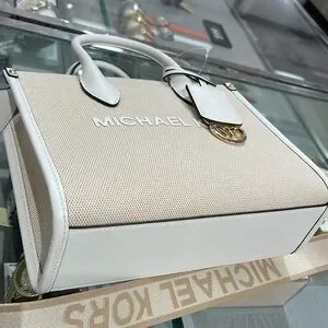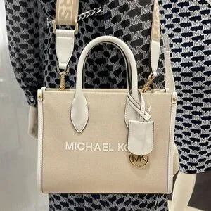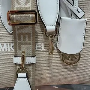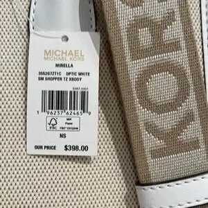 Michael Kors Mirella Small Shopper Top Zip Logo Crossbody XBODY Optic White NWT