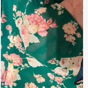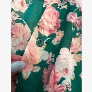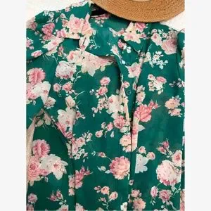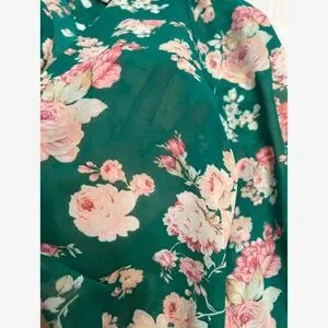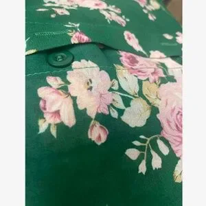 Green Button Down Shirt Long Sleeve Rose Floral Print Pink