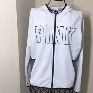 PINK Victoria’s Secret White & Black Zippered Hoodie