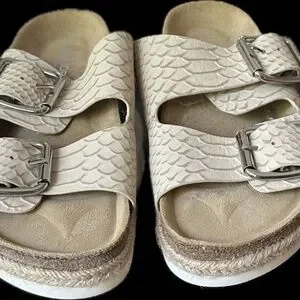J Slides Leighton Snake Embossed Leather Slide Sandal NWOB
