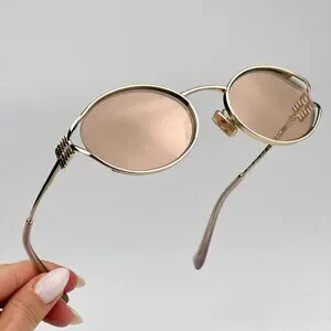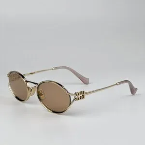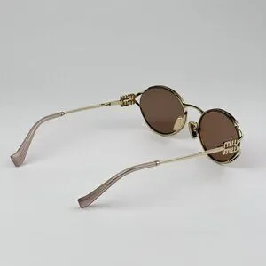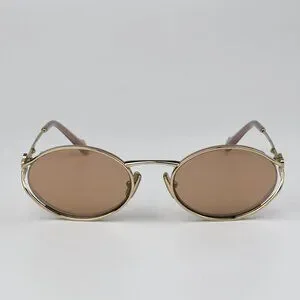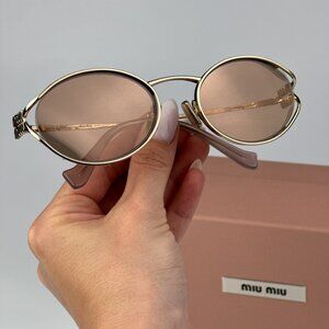 Miu Miu MU52YS ZVN20F BRAND NEW Sunglasses Pale Gold Pink Gold Mirror Silver Oval Unisex