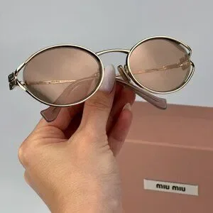 Miu Miu MU52YS ZVN20F BRAND NEW Sunglasses Pink Gold Mirror Silver Oval Unisex