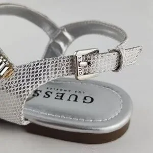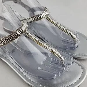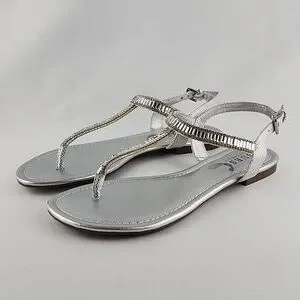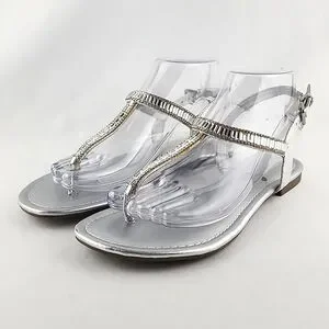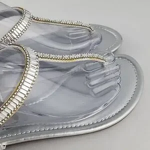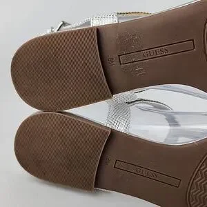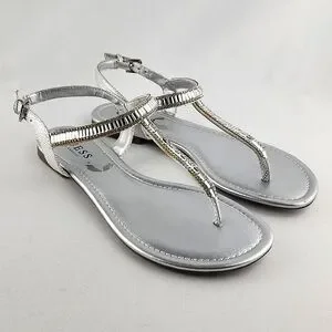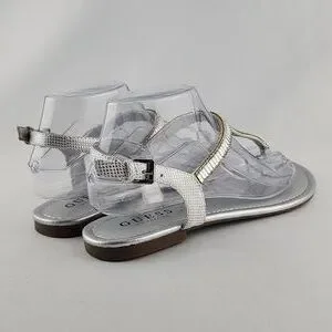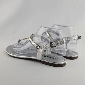 GUESS Women's Flat Silver Bejeweled Rhinestones Thong Sandals Size 8M