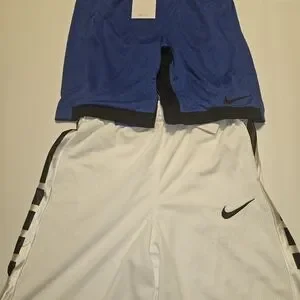 2 Pair of Nike Boys' Dri-FIT Elite Basketball Shorts White/Blue Large-/Bundle