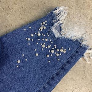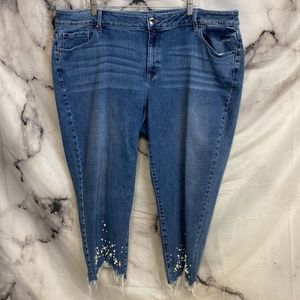 Lane Bryant denim with pearl ankle detail designed in New York there a mid rise